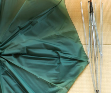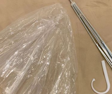 1. 우산의 비닐 또는 천 부분과 철로 된 살과 대를 분리합니다.
