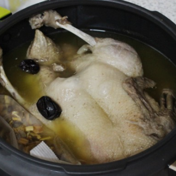 8. 오리는 닭보다 육질이 좀 더 질기니, 부드러운 오리식감을 원한다면 중 약불로 30분 더 끓여 줍니다.