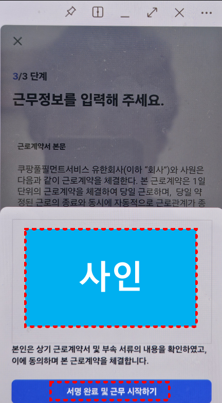 사람들 들어가는 곳 우르르 따라서 들어가면 바로 체크인하는 창구가 보이는데, 거기 보면 "기존 일용직" "신규 일용직" 줄을 서있는 걸 볼 수 있습니다. 거기서 "신규 일용직"에 줄을 서다가 본인 차례가 오면 처음 왔다고 말하면 종이 한 장 주면서 옆에 가서 견본 보고 작성하고, 키오스크에서 "원바코드"발급받아서 다시 줄을 서라고 알려줍니다.