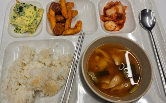 점심시간은 11:20~12:10, 11:30~12:20 이렇게 두 개의 시간대가 근무형태 별로 있으며, 점심 배식은 대충 위와 같습니다. 맛있는(?) 점심은 바라지 않는 것이 좋고, 근무하기 위한 위 채움(?) 정도로 알아두시면 될 듯합니다. 그래도 정말 못 먹겠다 할 정도는 아니니 너무 걱정할 필요는 없습니다.